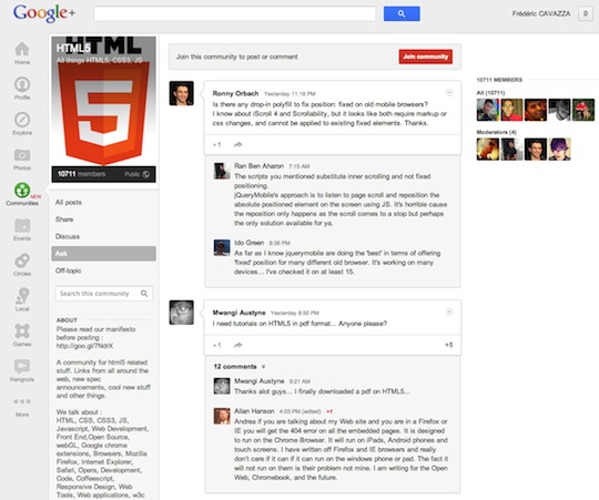 La communauté HTML5 est très formelle (Share, Discuss, Ask…).